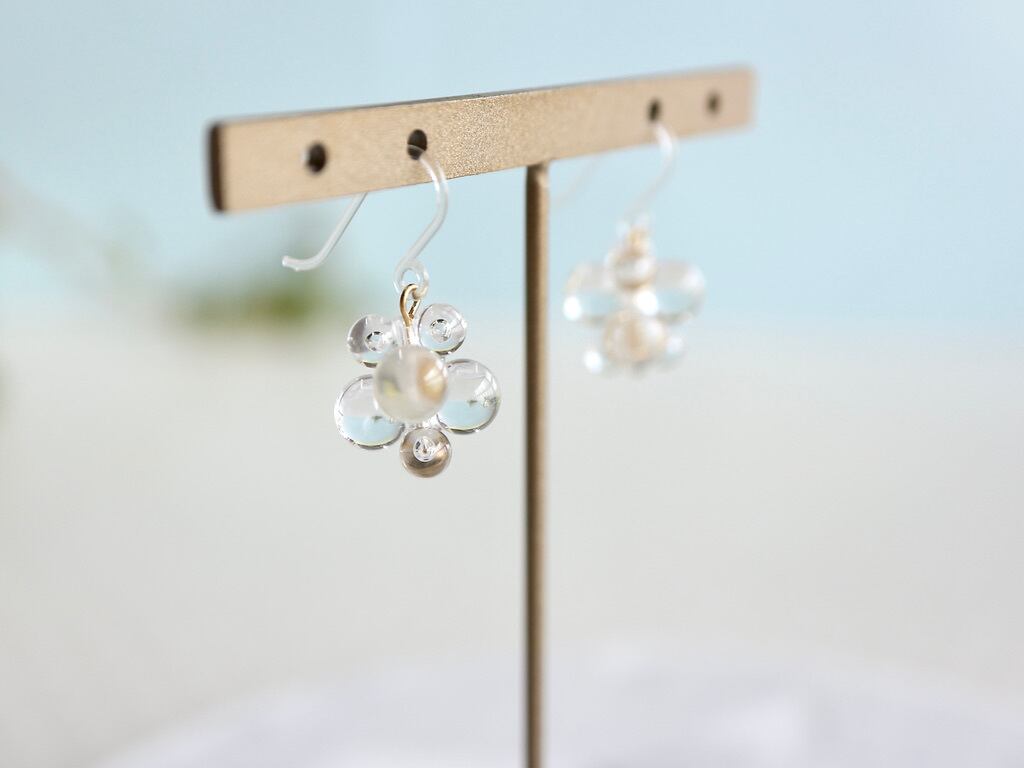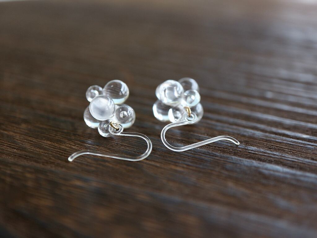 透明のアクリルビーズを使ったコロコロピアス。