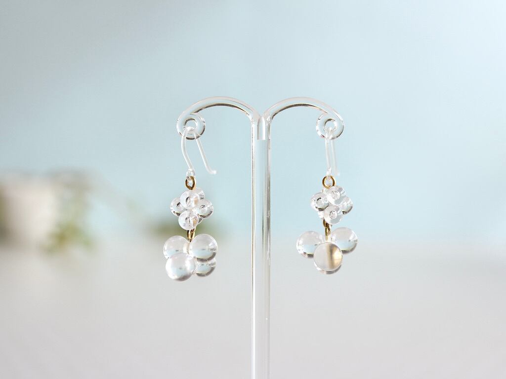 透明のアクリルビーズを使ったコロコロピアスの 2 Block ML タイプです。