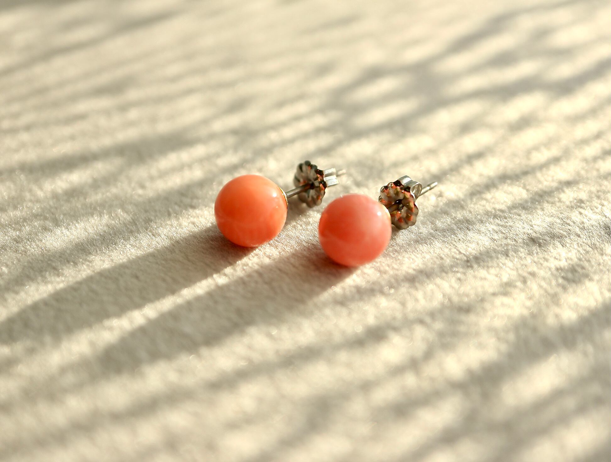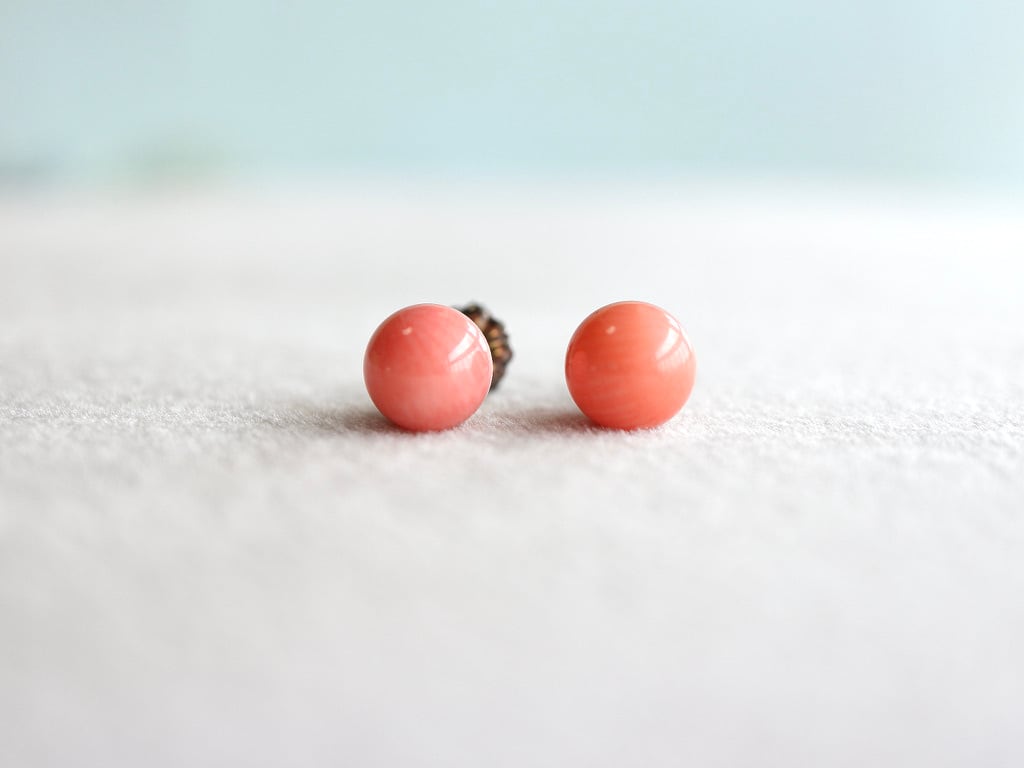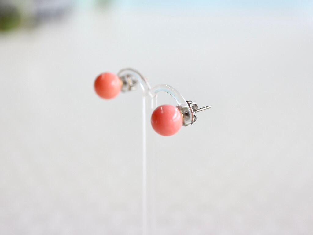 ピンクオレンジコーラル8mmピアス