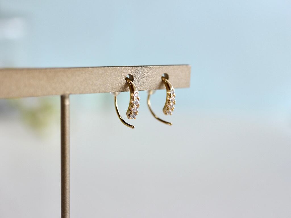 約2mmのキュービックジルコニアが4粒付いた小さめのフックピアス。