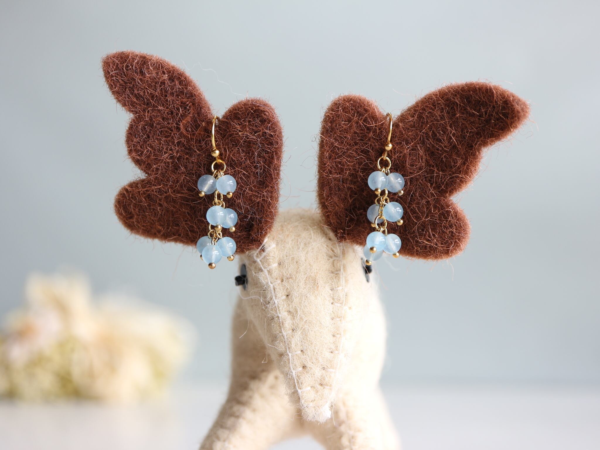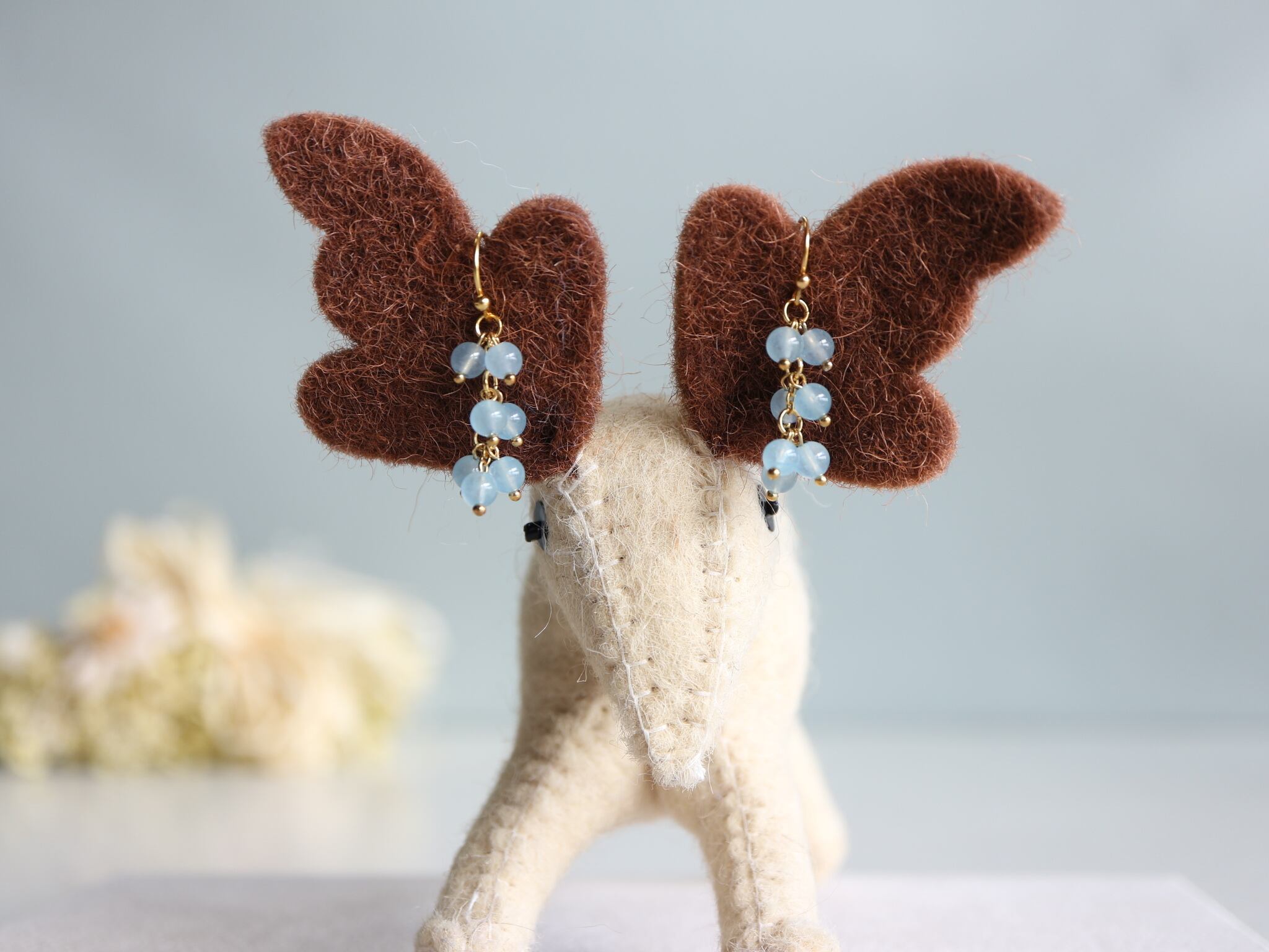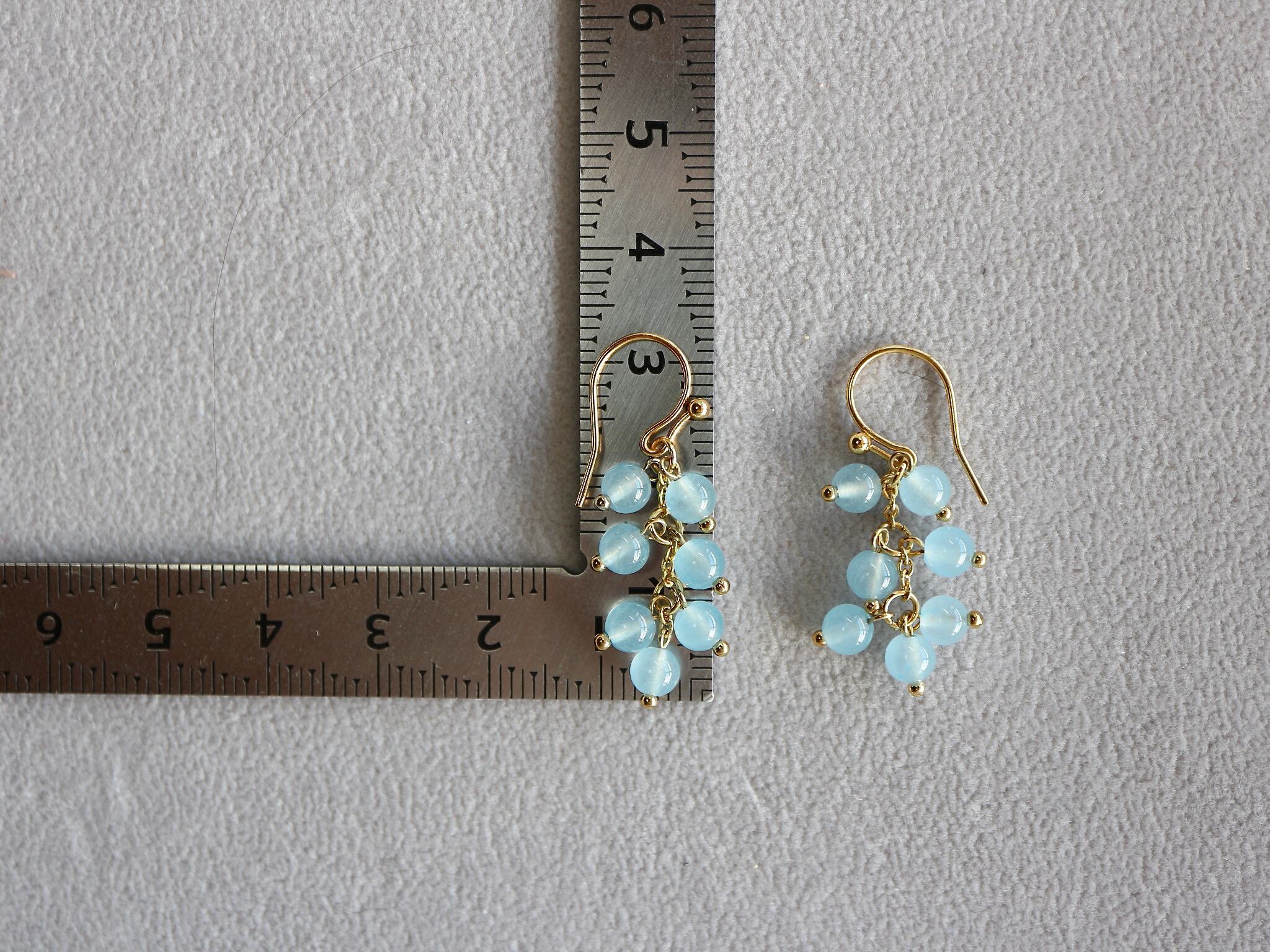 4mmラウンドのライトブルージェイドが下がった縦長ピアス。