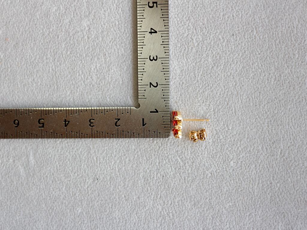ビビッドな赤のキュービックジルコニアのマーキスカットが連なったピアス。