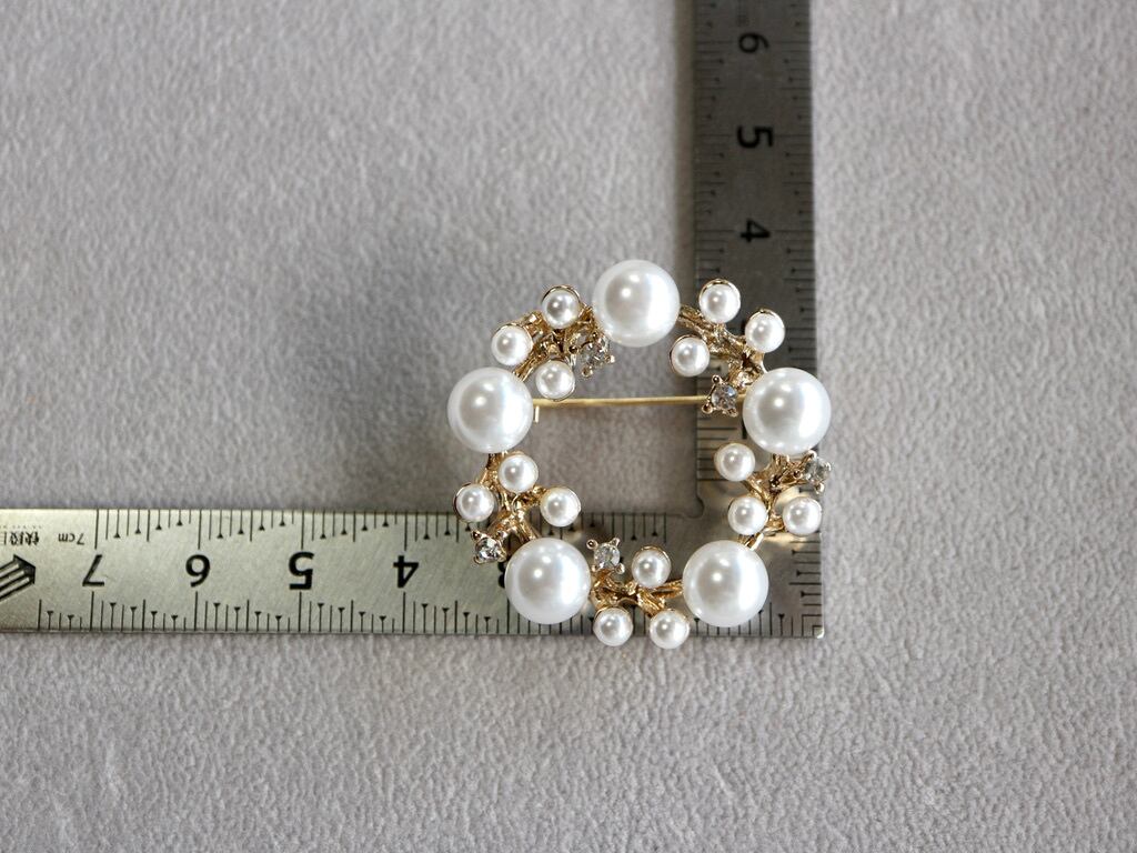 直径約3.6cmのプラパールのブローチ。